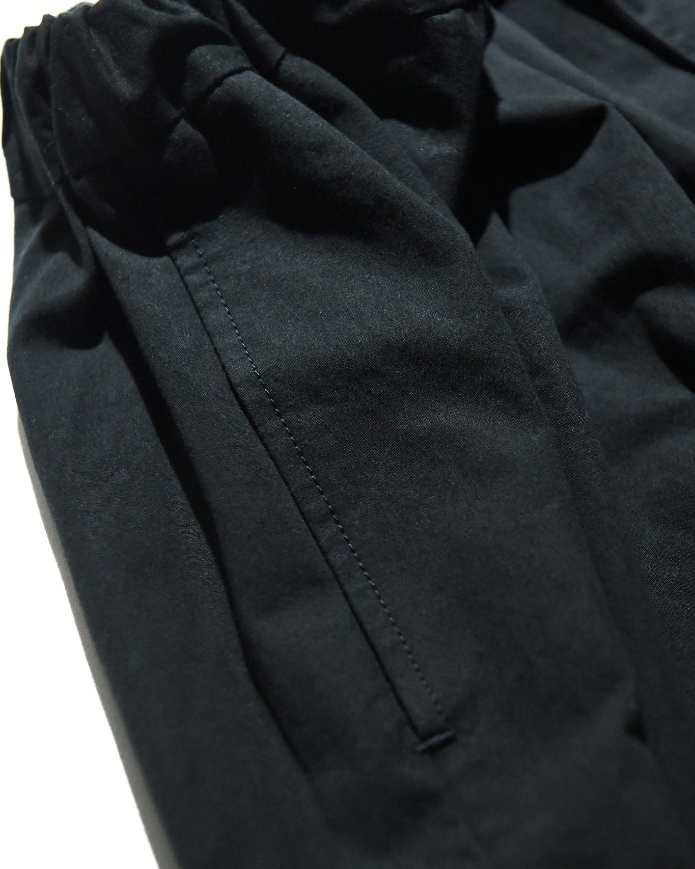 -生地を多く使っている分、ルーズになりすぎないように股下を短めに設定、裾にはドローコードを採用し、絞ることでシルエットに変化をつけることができる